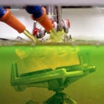 | Die Spül- und Kühlflüssigkeit - Dielektrikum wird zu dem Erosionsobjekt herangeführt. |