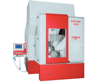 5Achs-HSC-Maschine RXP800DSH für große Werkstücke Hochgenaue optische Positionsgeber in allen Achsen, spezielle Röders Regelungs- und Steuerungstechnik und robuste HSC-Frässpindeln sorgen für höchste Präzision und Leistung im Werkzeug- und Formenbau, der hochgenauen Serienfertigung und der Luftfahrtindustrie. Auf dem großen Drehschwenktisch mit 600 mm Durchmesser können auch größere Werkstücke problemlos gespannt werden, auch automatisiert mit großen Palettensystemen. |