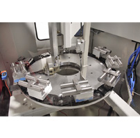 | Drehteller mit Werkstücken und Greifer im RC1 |