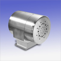 Die direkte berührungslose Messung der Verlagerung der rotierenden Spindelwelle erfolgt durch einen externen Sensor. Der Sensorhalter ist auch mit Wasser temperiert.